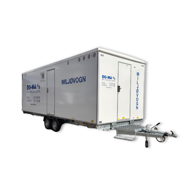Type: Miljøvogn til 4 pers, to separate zoner: En ren zone med spiseplads og skabe til rent tøj, toilet m/kværn og håndvask, og en beskidt zone med bruseniche, håndvask og skabe til beskidt tøj.